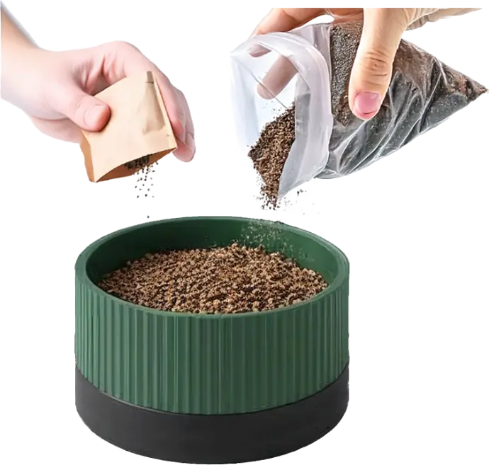 Vul de bovenste bak met de grond-mix.